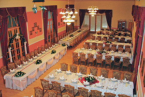 Széleskörű szolgáltatásainkhoz 250 fős bálterem, 130 fős Gobelin terem, 120 fős mediterrán terem, 25 fős protokoll terem, szivarterem, rendezvénycsarnok, 2-6 ágyas hotelszobák, szauna, mini wellness áll vendégeink rendelkezésére.